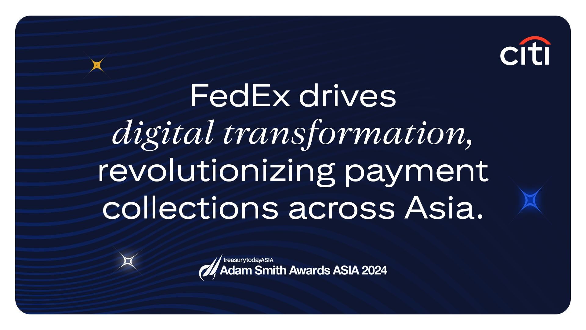 Working closely with Citi, FedEx can now offer expanded digital payment options to FedEx customers via the PEACE platform across Asia. Leveraging QR standards of instant payment schemes in Hong Kong and Singapore, PEACE displays unique dynamic QR codes to allow frictionless, real-time payments by FedEx customers.