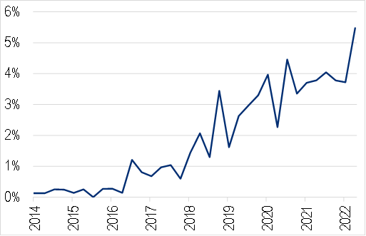 Figure 8. AI-enabled device approvals as a % of all FDA Class II approvals