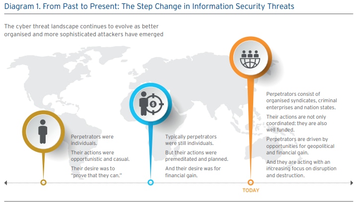 Fraud and cybersecurity threats continue to evolve as better organised and more sophisticated attackers have emerged. As illustrated in diagram 1, fraudsters and cyber attackers have become much more sophisticated in recent years. There has been a noticeable shift in the profile of those behind attacks.