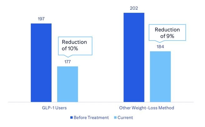A survey conducted in concert with the Citi innovation lab analyzed 1,000 U.S. adults, 499 of whom were GLP-1 users, and the other 501 users of other weight-loss methods. The survey asked about factors including weight loss satisfaction, financial impact of the drug, and changes in behavior & consumption patterns. The survey showed similar patterns of weight-loss across the groups.