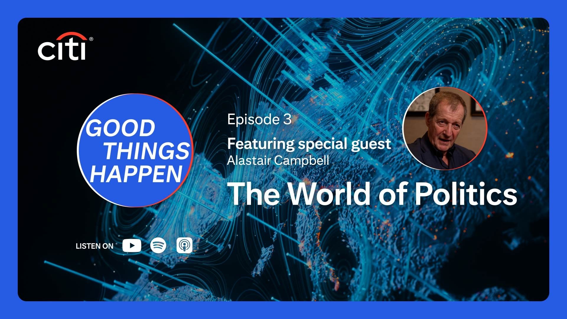 In series 5, episode 3 of Good Things Happen, host Jorian Murray is joined by Alastair Campbell, writer, communicator, strategist and former advisor to British prime minister Tony Blair, to discuss the changing landscape of political communication, the role of traditional and social media, and the challenges of maintaining truth and reason in modern political debates.