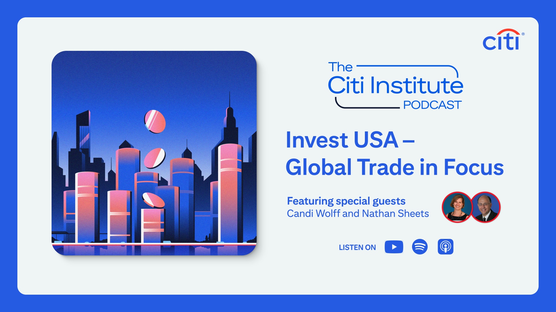 In this episode of the Citi Institute podcast, host Alex Miller is joined by Candi Wolff, Citi’s Head of Global Government Affairs, and Nathan Sheets, Global Chief Economist at Citi. They discuss the rationale for the current U.S. tariff regime and share their insights on the administration's ongoing trade negotiations and the global impact.