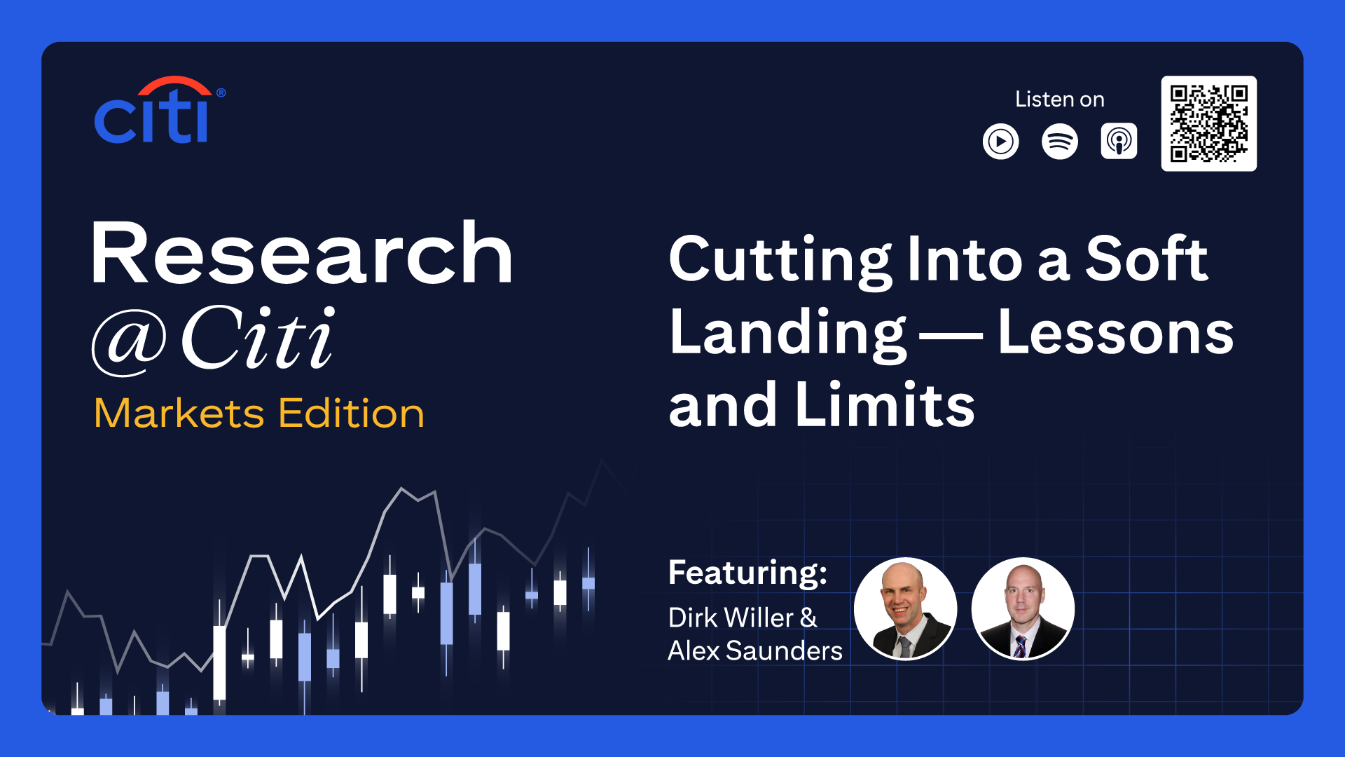 In the latest Research @ Citi Markets Edition podcast, Global Head of Macro Strategy Dirk Willer and Global Head of Quant Macro Strategy Alex Saunders discuss what the Fed’s rate cuts could mean for the U.S. economic outlook and various assets, how the labor market and tariffs could affect the economic picture, and the recent strength shown by Asian equities.
