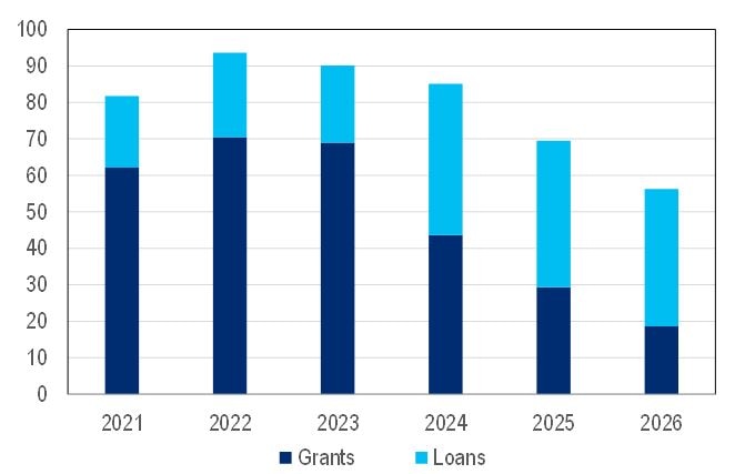 Grants to be paid first with loans following on. The team point to the plans being quite ‘front-loaded’ (2022-23) but they also caution that there could be delays to the start of payments this year.