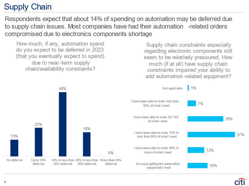 Source: Citi Research, Survey of Manufacturers (n=200)