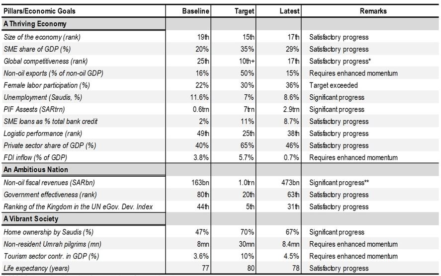 | Non-oil fiscal revenues (SARbn) | 163bn | 1.0trn | 473bn | Significant progress** |