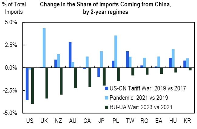 Reliance on Chinese imports fell for many "Western" allies only after the Russia-Ukraine war