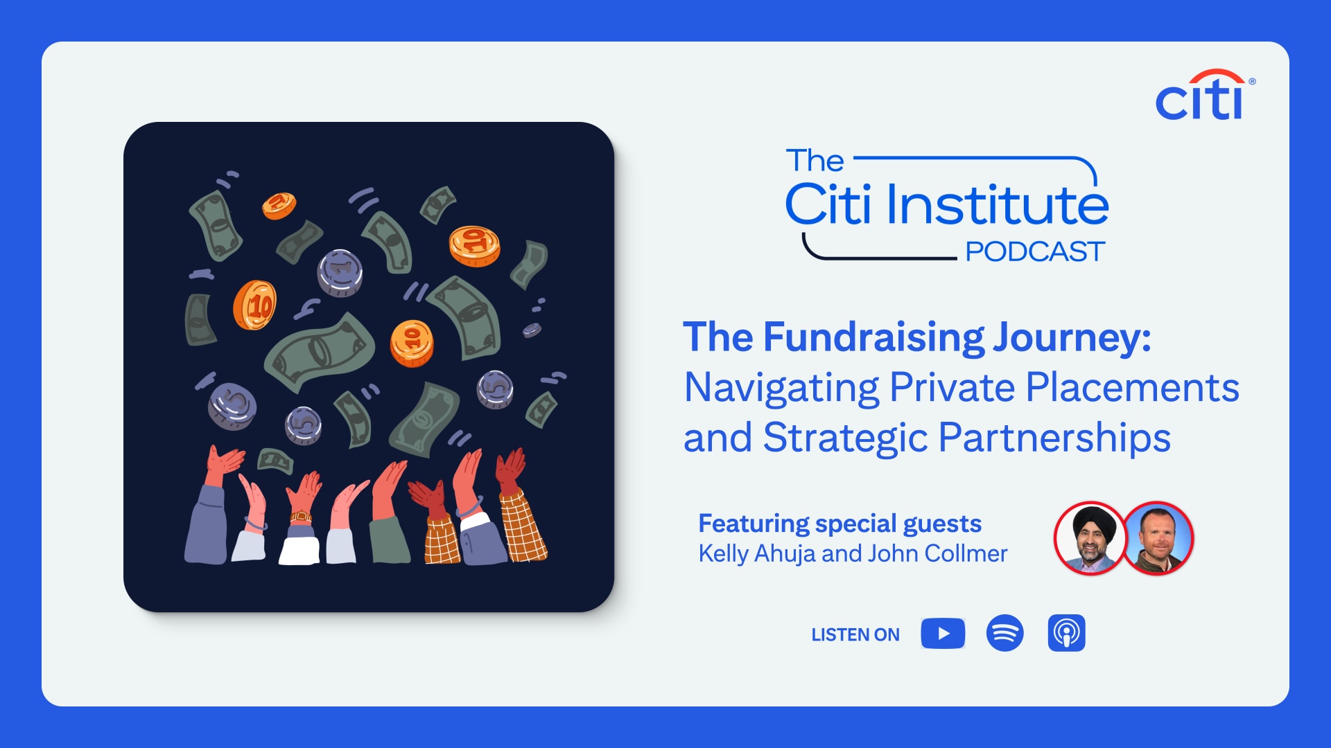 In this episode of the Citi Institute podcast, host Alex Miller is joined by Kelly Ahuja, CEO, Versa Networks and John Collmer, Global Head of ECM Private Placements, Citi to discuss fundraising, exploring the critical journey for companies at various stages of growth, from venture funding to IPOs and sharing insights on the strategies, considerations, and key decisions that shape a company's financial trajectory.