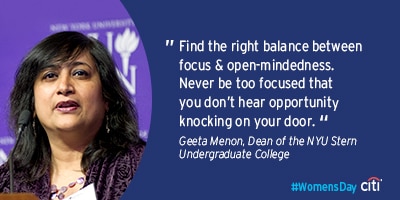 To celebrate International Women's Day, Geeta Menon, Dean of the Undergraduate College & Abraham Krasnoff Professor of Global Business & Marketing, NYU Stern School of Business, shares her story about the defining characteristic that led to her progress.