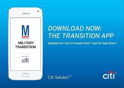 Today, Citi launched the Transition App with Military.com to help transitioning military members to achieve long-term economic, social and professional security for themselves and their families. Designed for all members of the armed forces (Army, Marines, Navy, Air Force, Coast Guard) and members of the National Guard and Reserve components, the Transition app features hundreds of resources and articles filled with actionable advice on employment, finances, relocation, transition requirements, health benefits, education, and veteran benefits. The app is responsive to the diverse and wide-ranging needs of veterans while tailoring individual experiences to the unique transition path of each user.