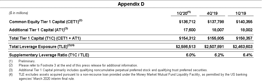 3 Ratios as of March 31, 2020 are preliminary. Commencing January 1, 2020, Citigroup's Common Equity Tier 1 (CET1) Capital ratio and Supplementary Leverage Ratio (SLR) reflect certain deferrals based on the modified regulatory capital transition provision related to the Current Expected Credit Loss (CECL) methodology. Excluding the deferrals based on the modified CECL transition provision, Citigroup's CET1 Capital ratio and SLR as of March 31, 2020 would be 10.8% and 5.8%, respectively, on a fully reflected basis.