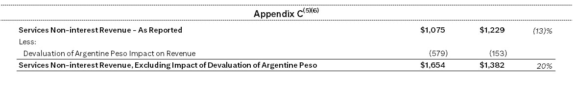 (6)  Citi recorded an approximate $880 million translation loss in revenues in Argentina in the fourth quarter of 2023 due to the recent devaluation of the Argentine peso. This decrease in revenues impacted Services, Markets, and Banking. The translation loss does not include net interest income of approximately $250 million on Citi’s net investment in Argentina in the quarter.