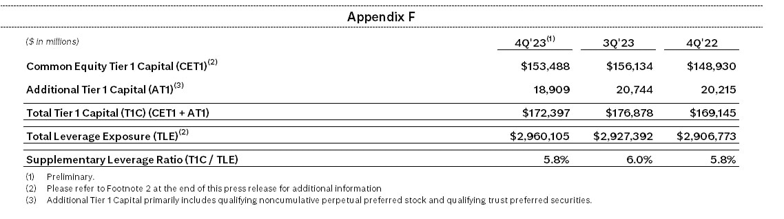 (2) Ratios as of December 31, 2023 are preliminary. Citigroup’s Common Equity Tier 1 (CET1) Capital ratio and Supplementary Leverage ratio (SLR) reflect certain deferrals based on the modified regulatory capital transition provision related to the Current Expected Credit Losses (CECL) standard. Excluding these deferrals, Citigroup’s CET1 Capital ratio and SLR as of December 31, 2023 would be 13.2% and 5.8%, respectively, on a fully reflected