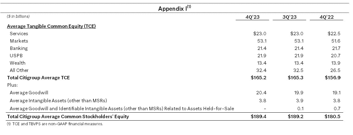 (4) Citigroup’s tangible book value per share is a non-GAAP financial measure. See Appendix G for a reconciliation of common equity to tangible common equity and resulting calculation of tangible book value per share.